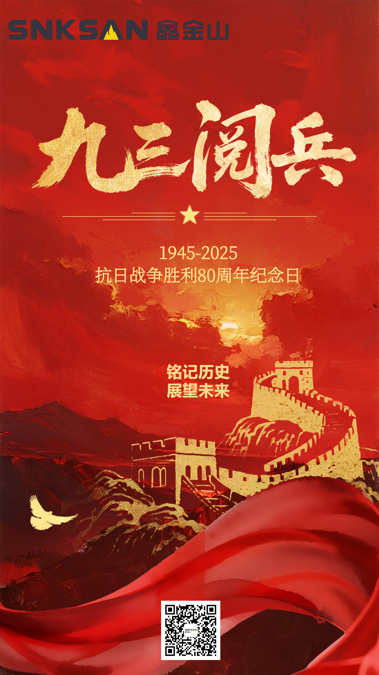 2025 年 9 月 3 日,我們迎來中國人民抗日戰(zhàn)爭暨世界反法西斯戰(zhàn)爭勝利 80 周年的光輝時刻。80 載時光荏苒,鐫刻著中華民族在烽火中挺立的不屈脊梁,也見證著華夏兒女賡續(xù)精神、砥礪前行的奮斗征程。鑫金山作為深耕破碎裝備領域的重工企業(yè),始終與祖國發(fā)展同頻共振,既銘記歷史中先輩們的無畏擔當,也深知當代工業(yè)人肩負的使命。在這意義非凡的時刻,鑫金山回望崢嶸歲月、錨定未來航向,以精益求精的破碎技術、堅韌不拔的制造匠心,向偉大勝利致敬,為民族工業(yè)振興注入強勁動能,讓重工力量與民族精神同輝。