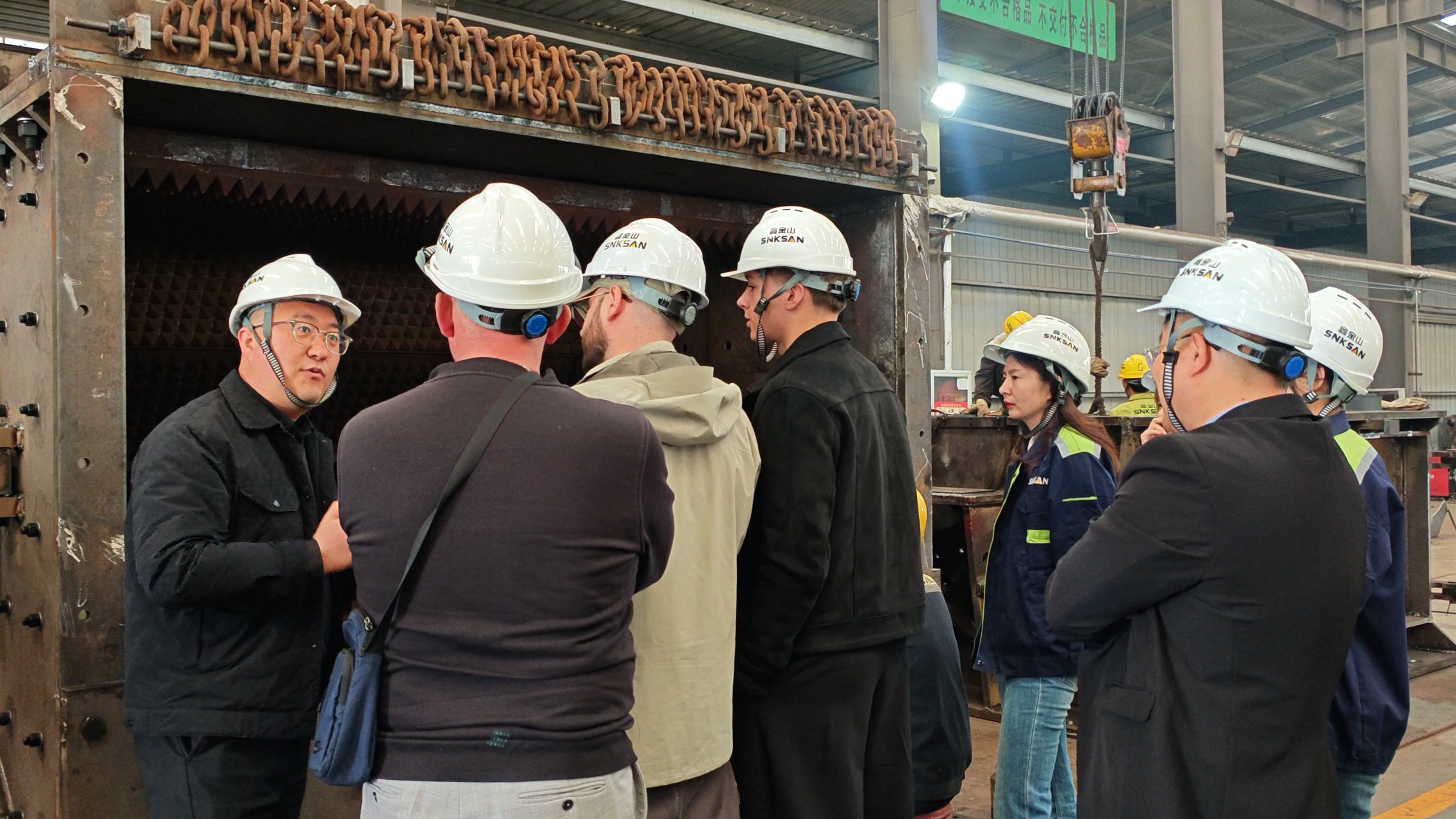 考察團一行在公司市場團隊的全程陪同下,先后深入鑫金山智能化生產(chǎn)車間、產(chǎn)品展廳及智能控制中心,近距離感受企業(yè)的研發(fā)實力、制造水平與服務理念。陪同人員結合企業(yè)發(fā)展歷程,詳細介紹了鑫金山在破碎篩分裝備研發(fā)、智能系統(tǒng)集成及EPC總包服務等領域的深厚積淀與突出成果,讓海外客戶對公司的全產(chǎn)業(yè)鏈服務能力有了系統(tǒng)認知。