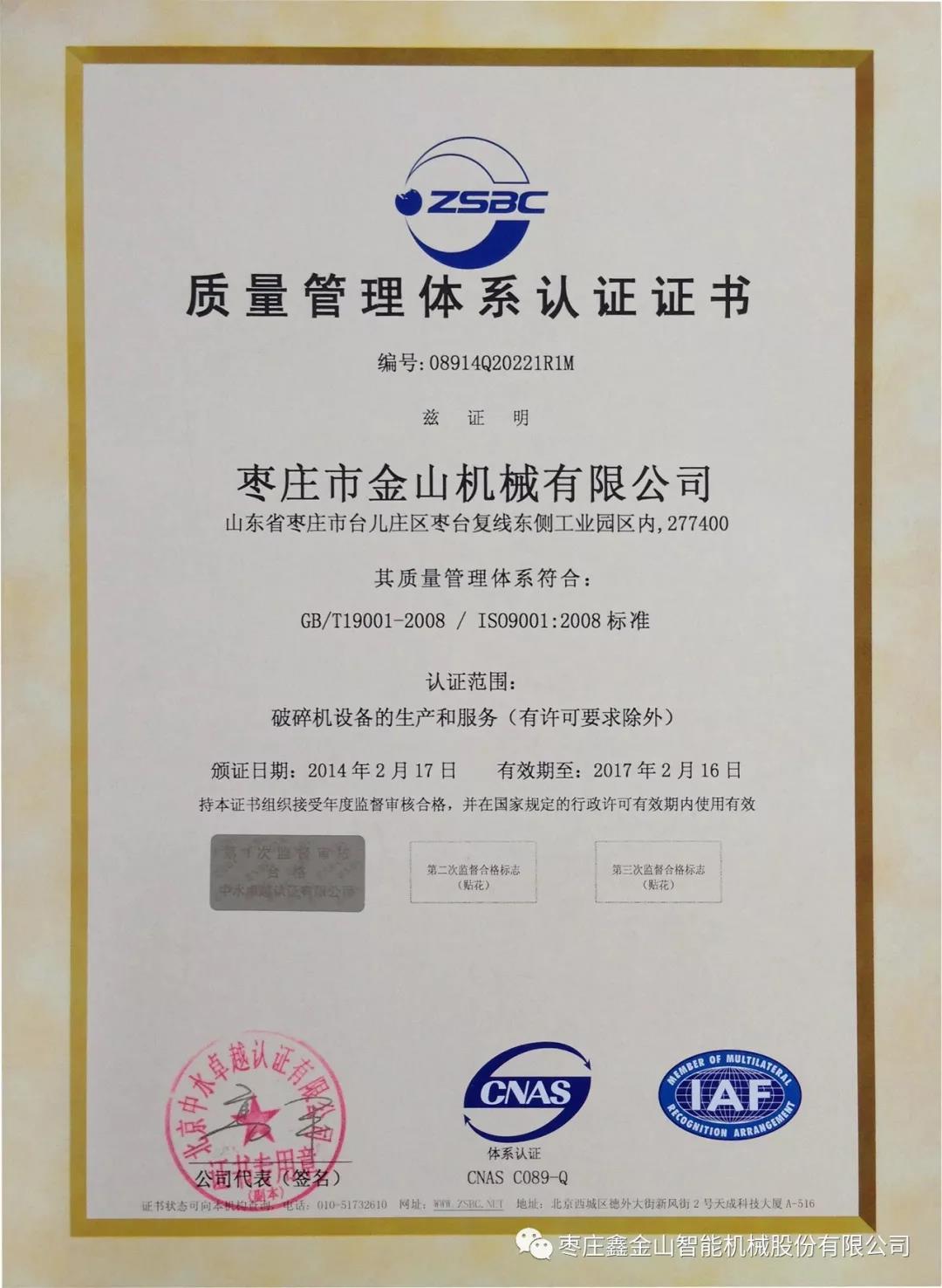 5月,獲得“ISO9001質(zhì)量體系認(rèn)證”,客戶滿意度不斷提升。8月,新型單段重錘反擊破所生產(chǎn)的高品質(zhì)骨料成功應(yīng)用于京滬高鐵路棗莊段的施工建設(shè)中。