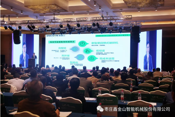 鑫金山公司營銷總監(jiān)胡振霖在會上作了《鑫金山高效節(jié)能破碎裝備與工藝在綠色礦山中的應(yīng)用》的演講。并推出了高性能單缸液壓圓錐破,吸收歐洲先進(jìn)技術(shù),集機械、液壓、電氣、自動化、智能控制等技術(shù)于一體,可以廣泛應(yīng)用于中碎、細(xì)碎以及超細(xì)碎等破碎作業(yè)中。演講中說到綠色礦山建設(shè)行業(yè)標(biāo)準(zhǔn)應(yīng)積極采用先進(jìn)高效節(jié)能的開采加工設(shè)備、技術(shù)和工藝,堅決淘汰高耗能、高污染、低效率裝備和工藝,加快綠色礦山建設(shè)。鑫金山始終秉承綠色礦山建設(shè)宗旨,堅持科技創(chuàng)新,持續(xù)研發(fā)新產(chǎn)品、新工藝。憑借成熟的骨料線短流程經(jīng)驗,成為了國內(nèi)知名的專業(yè)破碎篩分設(shè)備制造商、綠色礦山裝備制造商、砂石骨料生產(chǎn)線EPCO綜合服務(wù)商。同時,胡總監(jiān)代表公司介紹了鑫金山骨料線的智能化和EPCO總包工程項目案例,均得到了與會嘉賓的高度認(rèn)可和關(guān)注。此次參展給公司帶來了大批潛在客戶,收獲巨大,為鑫金山開拓新的市場奠定了重要基礎(chǔ)。