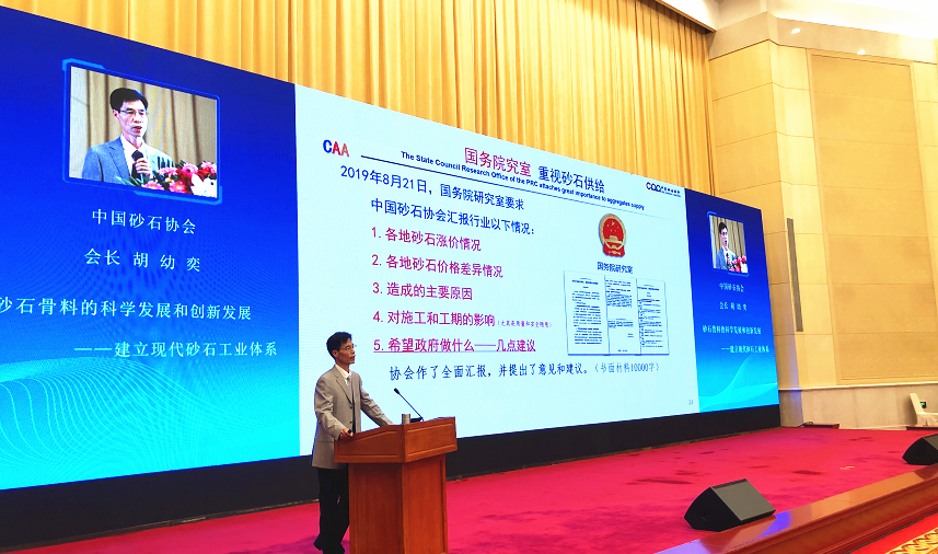 之后,中國砂石協(xié)會會長胡幼奕發(fā)表了題為《砂石骨料的科學(xué)發(fā)展和創(chuàng)新發(fā)展——建立現(xiàn)代砂石工業(yè)體系》的主旨演講。