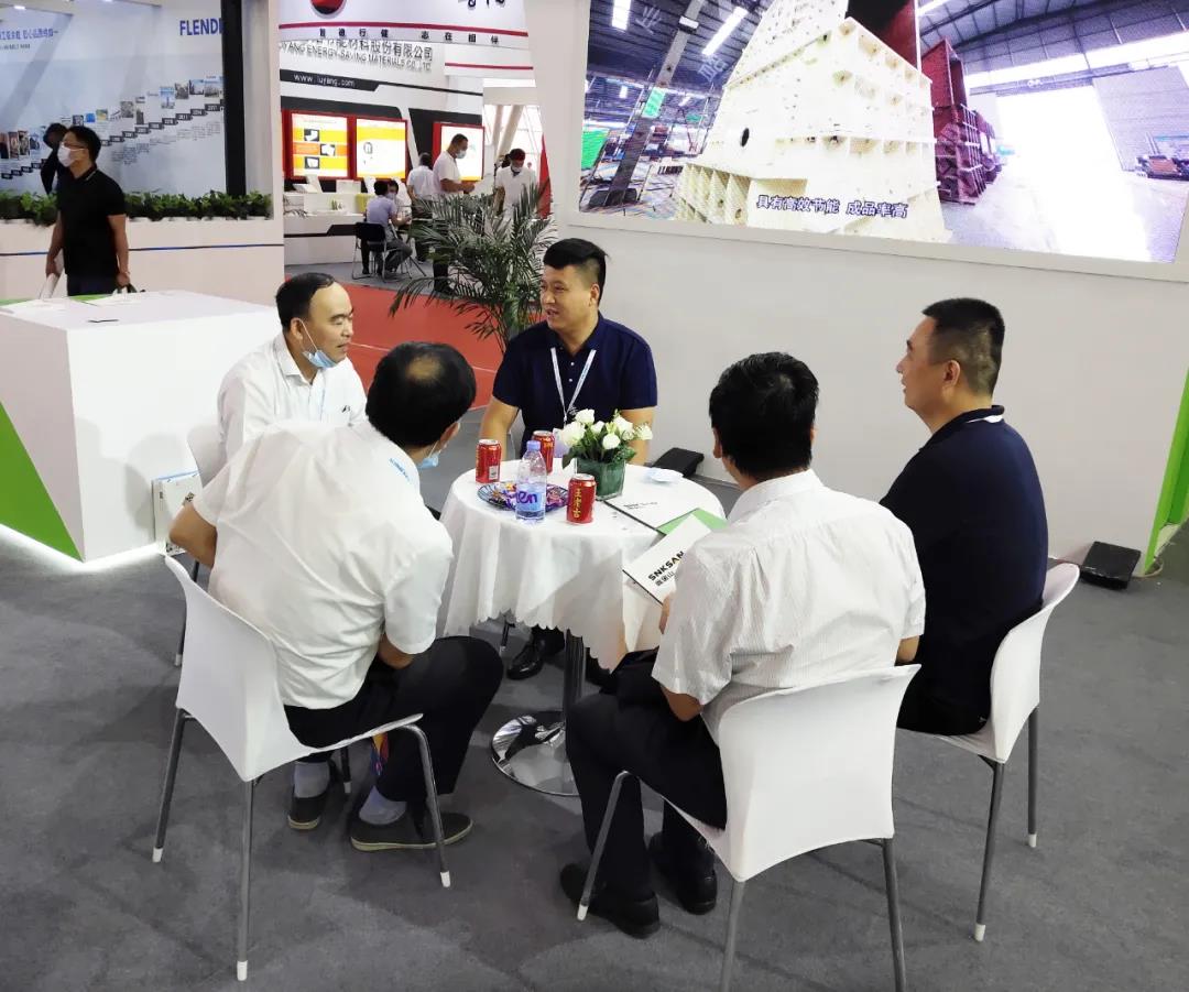 展會現(xiàn)場,鑫金山攜時產(chǎn)4000噸精品砂石骨料生產(chǎn)線模型供展會嘉賓參觀,現(xiàn)場工作人員熱情接待了前來咨詢了解的客戶,專業(yè)技術(shù)團隊將公司新技術(shù)、新產(chǎn)品、新生產(chǎn)設(shè)計理念與參會嘉賓進(jìn)行了深入交流與討論。